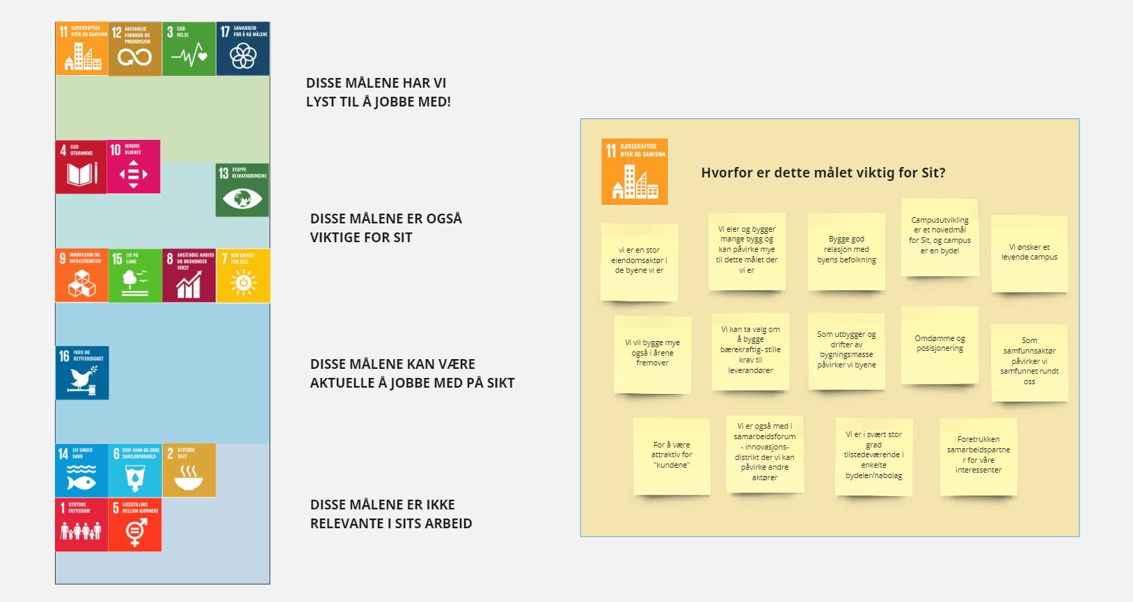 Sit har gjennom dette prosjektet satt bærekraft øverst på sin dagsorden og tilpasset FNs bærekraftsmål til eget virke for å kunne bidra konkret i den globale dugnaden for en mer bærekraftig utvikling. Dette arbeidet har vært en kombinasjon av Asplan Viaks analyser og faglige innspill, og medvirkning fra ledelsen, de ansatte og studentene. Sammen har vi avdekket hva Sit allerede gjør som bidrar positivt for å nå bærekraftsmålene.