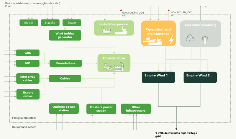 Analysen inkluderer blant annet produksjon av selve vindturbinene og fundamentene de står på, samt nødvendige kabler og onshore/offshore substasjoner. Drift av fartøyer til installasjon, drift og vedlikehold er også vurdert. De foreløpige resultatene viser en “klimamessig tilbakebetalingstid” på rett i overkant av et år, hvis man antar at den produserte elektrisiteten kommer til erstatning for den gjennomsnittlige energimiksen i New York. Det er spesielt det å produsere materialene som brukes for selve turbinene og fundamentene som er viktige, men også installasjonen spiller en rolle.